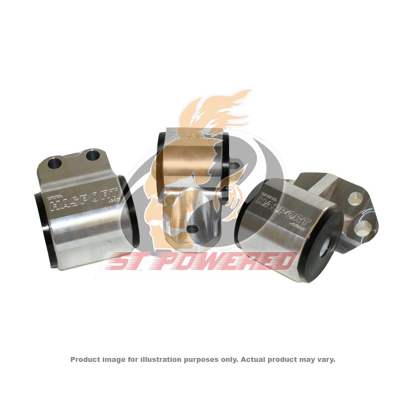 Performance mount kit for use with the stock B-series engine (with 3-bolt left-hand mount bracket) and transmission in the 94-01 Integra. These mounts will also work with D-series engines with 3-bolt timing left-hand mount bracket. This kit replaces the stock left, right and rear mounts.